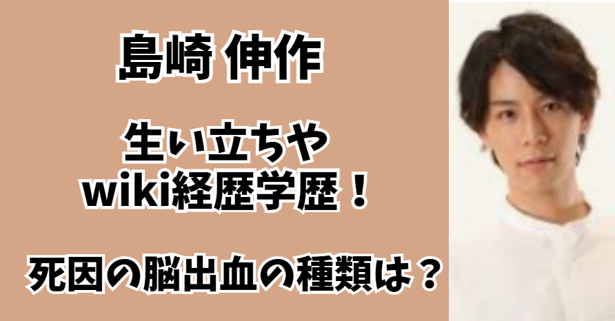 主に俳優として活躍していた島崎伸作(しまざき しんさく)さん。 2025年9月6日に、脳出血によって31歳という若さで亡くなったことがわかりました。 島崎伸作さんの早すぎる訃報に、世間は悲しみに暮れています。 今回の記事では 島崎伸作の代表作 【家族... Uncategorized島崎伸作の生い立ちやwiki経歴学歴!死因の脳出血の種類は?